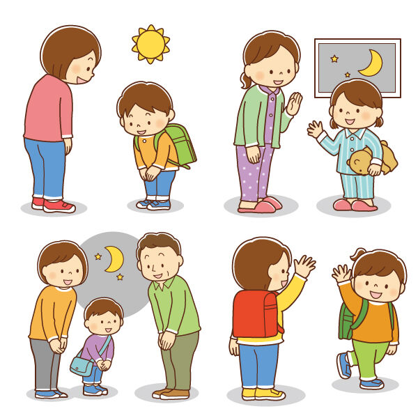 学校生活の中でも、いたるところであいさつを耳にする。朝の「おはよう」に始まり、「ありがとう」「どういたしまして」「いただきます」「おねがいします」「さようなら」など。道徳の授業でも、あいさつをテーマにした話がどの学年でもある。それくらい大切にしていこうというものなのだろう。