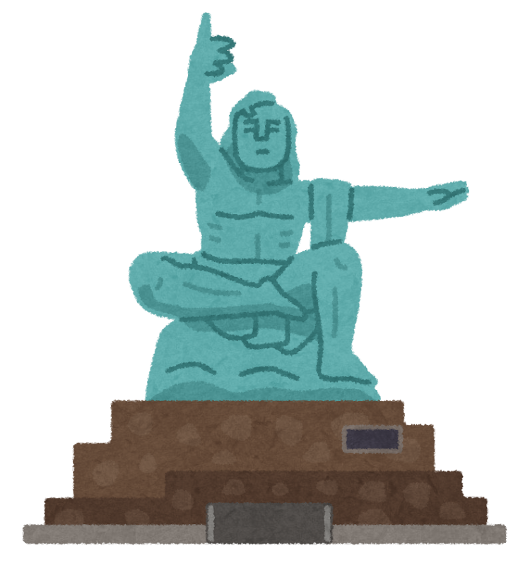 先日、長崎を訪れた。家族旅行だったし、スケジュールに余裕がない中ではあったが、どうしても長崎の平和公園にある平和祈念像を生で見たかったので行ってみた。みんなも教科書や資料集、ネットやテレビなどで見たことがあると思う。直接見たことがある人はいるかな?右手で天を指し、左手を水平に保っている。右手は「上空で爆発した原爆」を、左手は「平和」を、そしてつぶっている目は「戦争犠牲者の冥福を祈る」という意味があるようだ。一人の日本人として、どうしても行きたかった地に行けた(広島には過去2回行っている)。